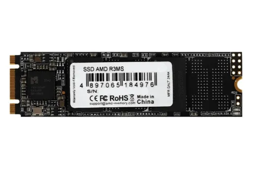 Накопитель AMD Radeon R3 Series обеспечивает скорость работы с данными, которая достаточна для удовлетворения потребностей большинства пользователей стационарных компьютеров и ноутбуков. Пиковая скорость последовательного чтения составляет 550 МБ/с. Наибольшая скорость последовательной записи равна 500 МБ/с. Роль упаковки накопителя исполняет блистер, изготовленный из прозрачного пластика. На упаковке размещена базовая техническая информация.Применяемый для связи с устройством интерфейс – SATA 3. Ключ M.2-разъема – B.