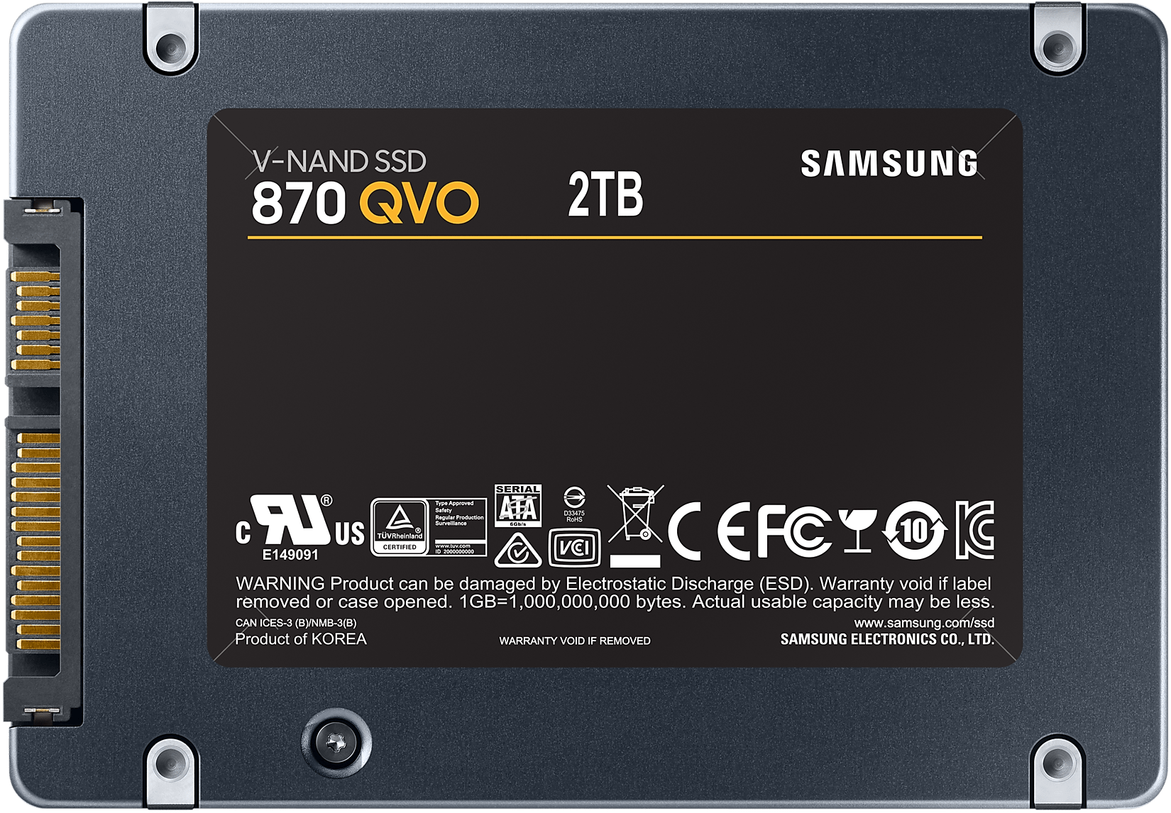 Твердотельный накопитель Samsung 870 QVO обладает большой емкостью 2000 ГБ и благодаря своим возможностям станет отличным выбором для самых разных компьютеров. Диск выполнен в формате 2.5” и может устанавливаться как в полноразмерные корпуса системных блоков, так и в моноблоки, а также в ноутбуки. SSD-накопитель Samsung работает на базе первоклассных чипов памяти, отличительной чертой которых является объемная структура. Благодаря этому, а также производительному контроллеру Samsung MKX и физическому порту SATA III, используемому для подключения, обеспечивается запись и чтение данных на скорости до 530 и 560 МБ/с соответственно, что позволит более комфортно работать с файлами, а также сократит время загрузки приложений и операционной системы. Помимо этого модель отличается высокой надежностью и отказоустойчивостью. Ресурс работы накопителя составляет 720 TBW, что соответствует длительному сроку службы.