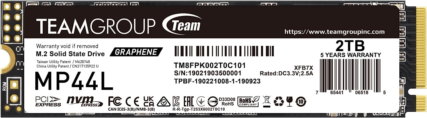 M.2 накопитель Team Group MP44L способен эффективно справляться с требовательными ресурсоемкими задачами в составе стационарных и портативных ПК. Скорость до 4800 Мбайт/сек увеличивает отзывчивость всей системы и уменьшает время отклика. Благодаря объему 2000 ГБ накопитель предоставляет достаточно пространства для хранения игр, видеоматериала, мультимедийного контента и прочих файлов. Team Group MP44L отличается компактными размерами и подключается с помощью интерфейса PCI-E 4.0 x4. Для повышения эффективности и стабильности на диске применяется графеновое покрытие.