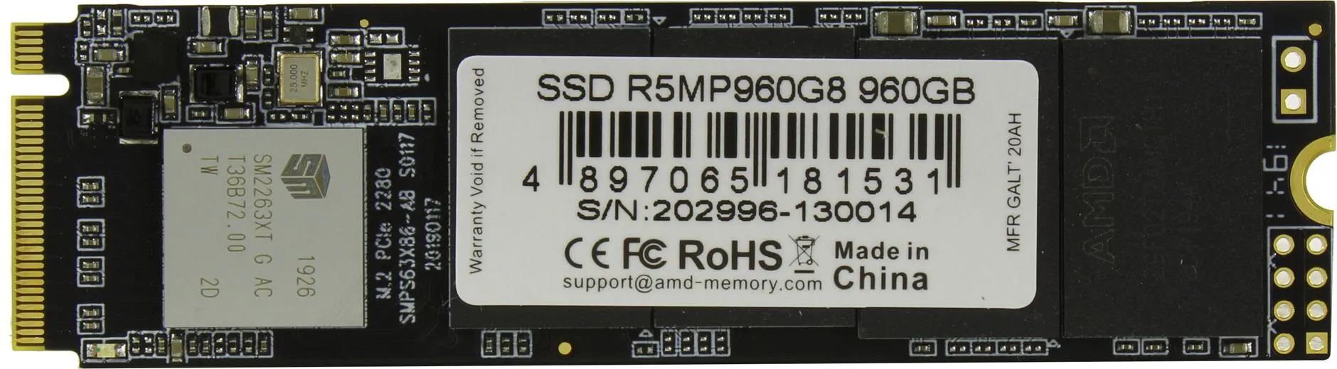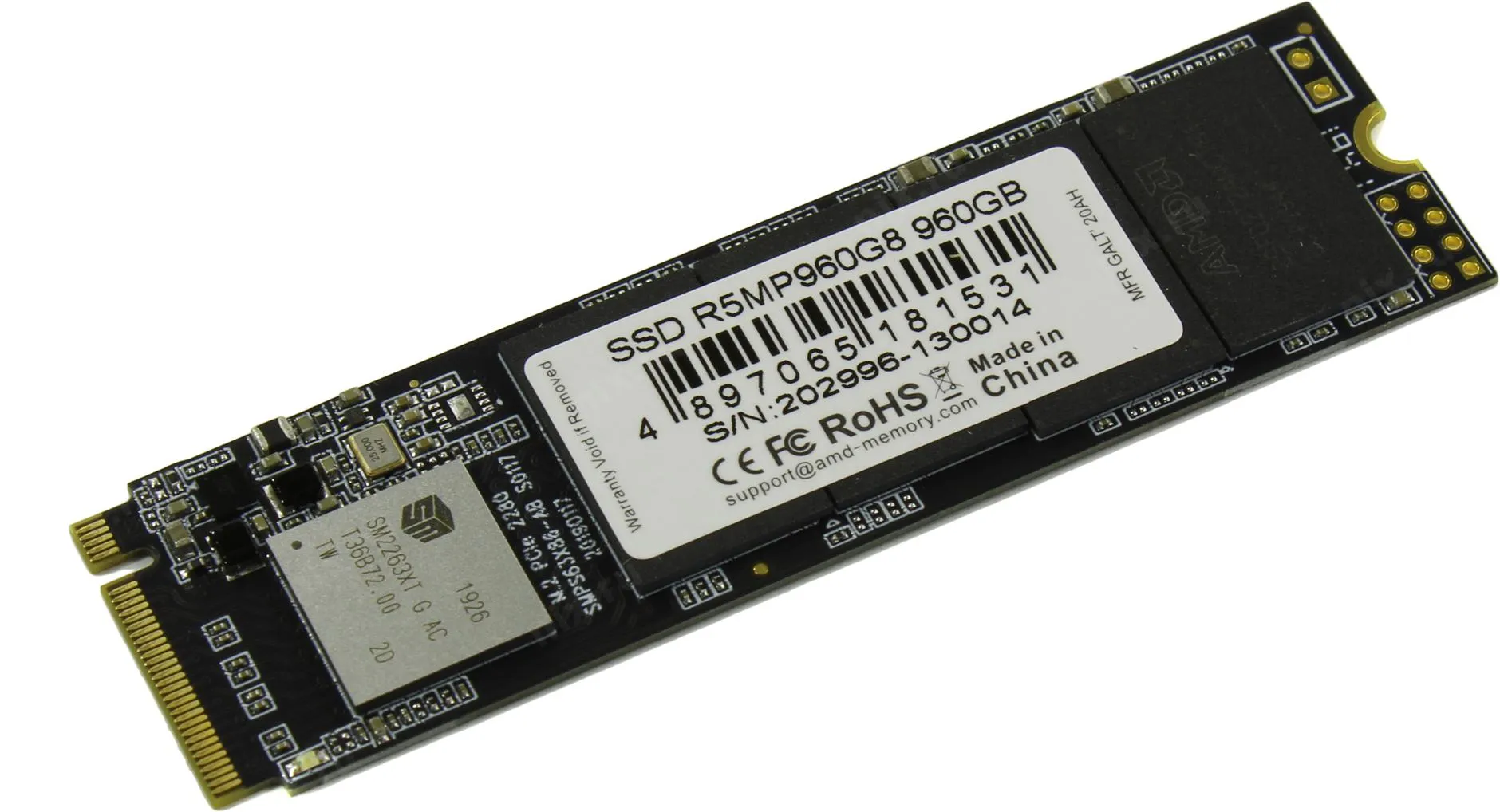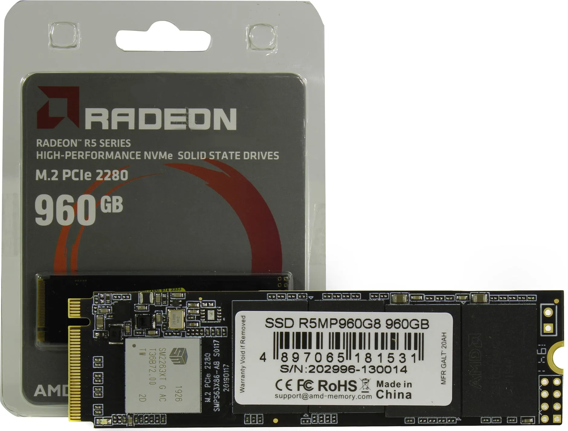 Твердотельный накопитель 960GB SSD AMD RADEON R5 M.2 2280 PCl-E R2100MB/s, W1650MB/s R5MP960G8