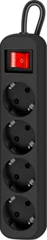 Удлинитель с заземлением Defender G430 Выключатель, 3.0 м, 4 розетки, черный