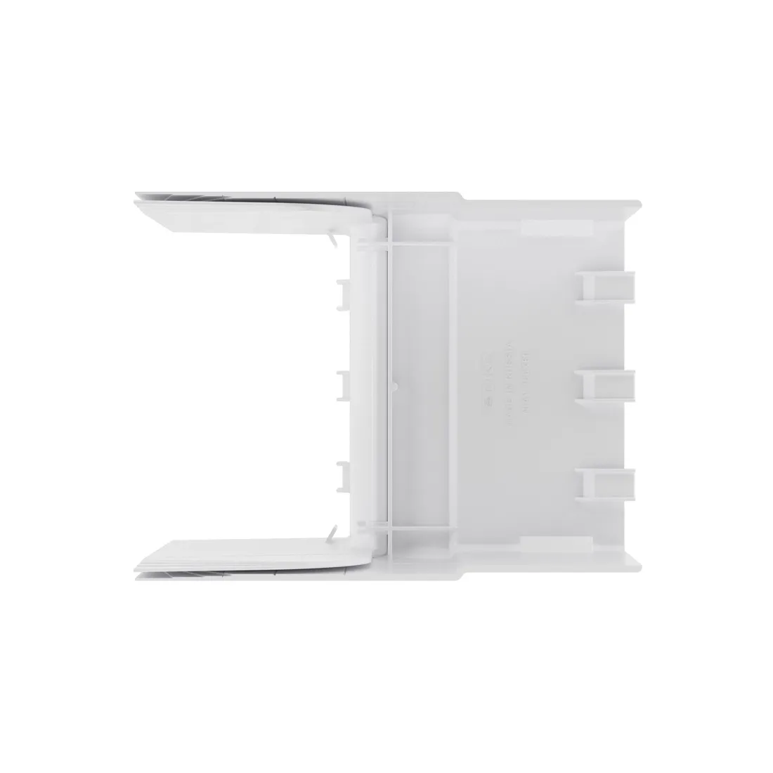 Тройник используется для маскировки мест Т-образных стыков. Аксессуар совместим с кабель-каналами 90х50 мм. Материал: накладка – АБС-пластик; база и разделители – ПП. Цвет - белый