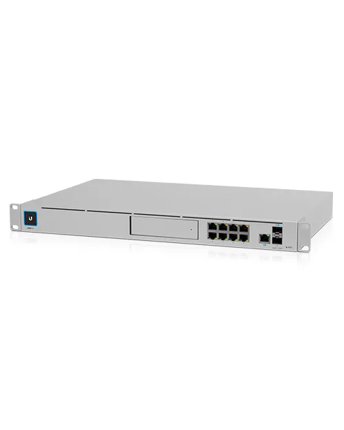 Шлюз может подключаться к внешней сети по 1 порту Ethernet на скорости 2,5 Гбит/с и 1 порту SFP+ на скорости до 10 Гбит/с. Подключение к WAN поддерживает резервирование и балансировку нагрузки для точек доступа UniFi. Правила QoS могут устанавливаться на основе приложения, домена и страны. Дополнительное резервирование Интернета можно организовать с помощью LTE-модема UniFi LTE Backup или UniFi LTE Backup Pro (приобретаются отдельно).