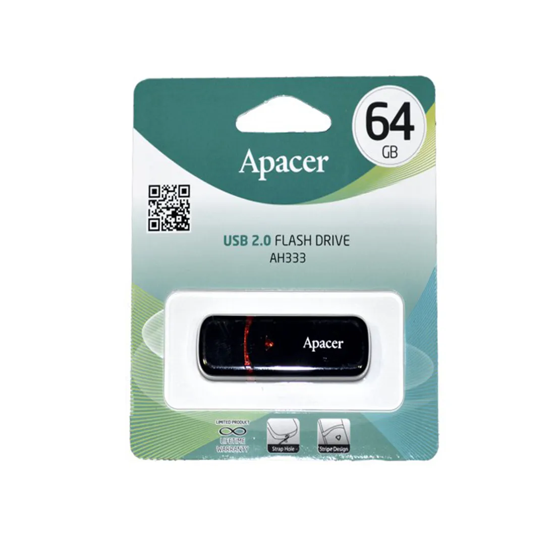 USB-накопитель, Apacer, AH333, AP64GAH333B-1, 64GB, USB 2.0, Чёрный