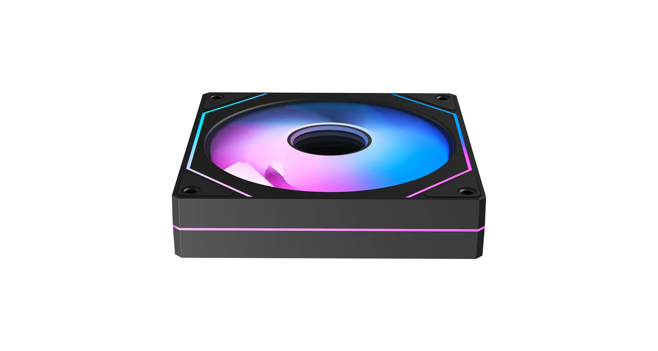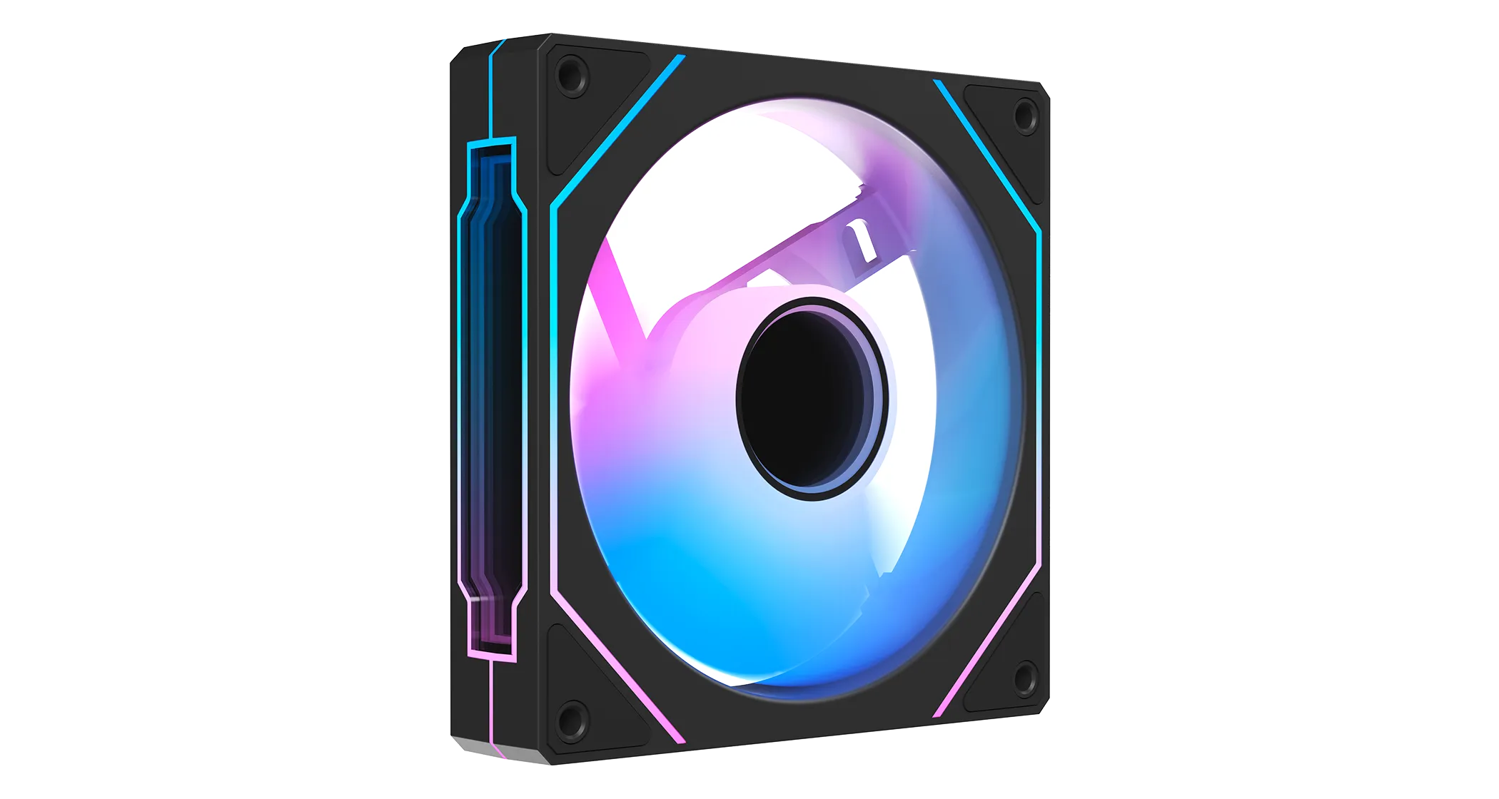 Уникальность лопастей заключается в зеркально-белом покрытии, которые только подчёркивают RGB-подсветку и визуально делают её ещё ярче. А центр вентилятора имеет эффект зеркала Infinity Blade, создающий иллюзию бесконечной глубины.