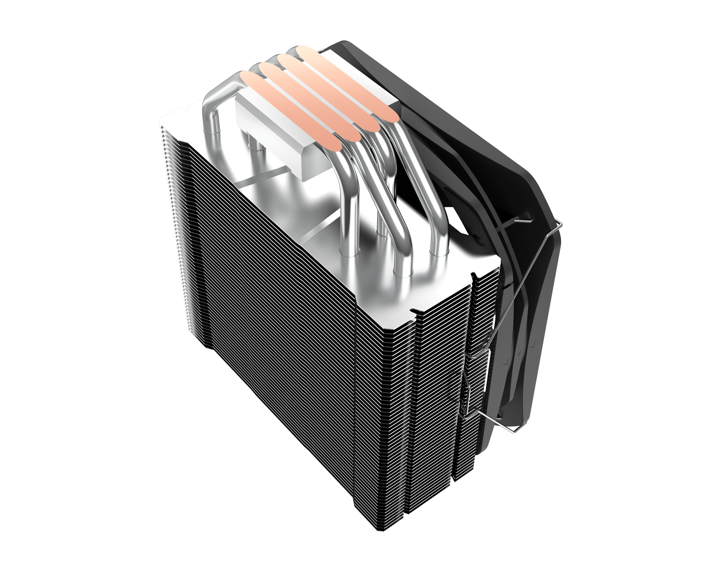 В вентиляторе для процессора PCCooler PALADIN EX400 ARGB используются четыре 6-миллиметровые композитные тепловые трубки. При использовании гидродинамического подшипника, воздушный поток при полной нагрузке достигает 73.6 CFM, что позволяет эффективно отводить тепло в бесшумном режиме.