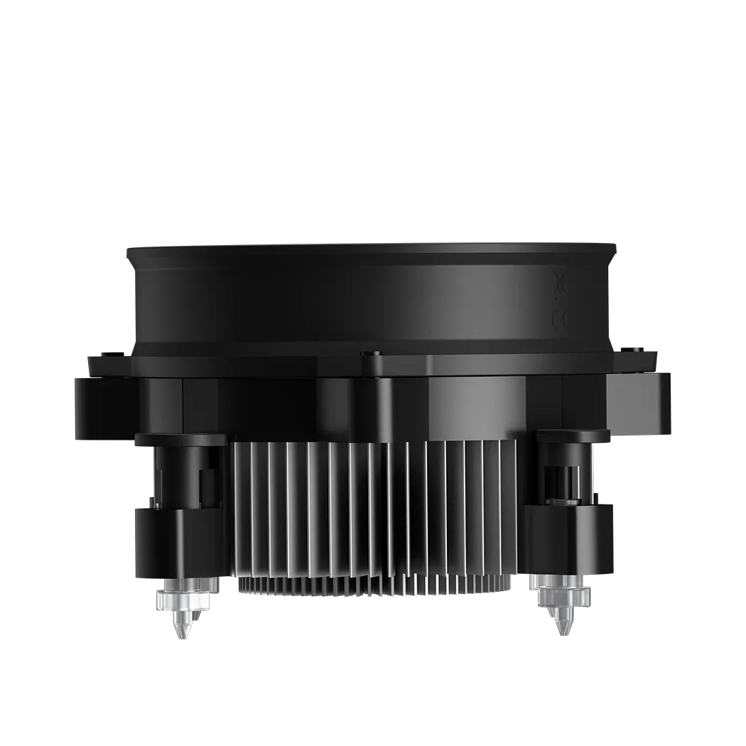 Медный сердечник и алюминиевая экструзия, длительный срок службы и высокая эффективность охлаждения. Большой вентилятор с диаметром 120 мм очень эффективно отводит тепло. Уникальная конструкция рамы вентилятора направляет воздушный поток для отвода тепла от памяти и материнской платы.
