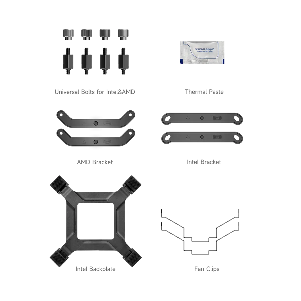Простая установка: Вентиляторы легко устанавливаются на различные места в корпусе с помощью крепежных элементов, включенных в комплект.