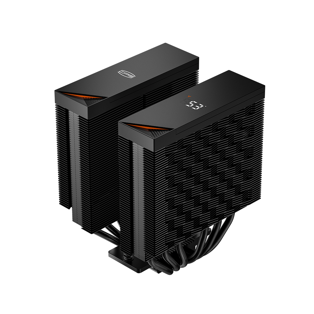 Один из Топовых кулероа выделяющийся высокимTDP 265W достигаемого путем охлаждения 2-ч алюминиевых радиаторов с 6 трубоками каждый 2-мя вентиляторами охлаждения. Медное основание в зоне процессора обеспечивает высокий теплоотвод! Данная модель имеет цифровой циферблат с актуальным выводом текущей температуры процессора.