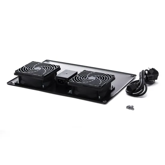 Вентиляторная панель предназначена для искусственной вентиляции оборудования внутри сетевого шкафа, а также снижения запыления аппаратуры. Устанавливается в верхнюю панель (крышу) серверного шкафа. Панель оснащена двумя вентиляторами. Включение/выключение осуществляется пользователем. Изготовлена по высокоточной технологии из высококачественного стального листа холодной прокатки. Имеет качественное порошковое покрытие с предварительным фосфатированием поверхности. Рабочее напряжение 220V/50HZ. Размер каждого вентилятора 120X120X38 мм.