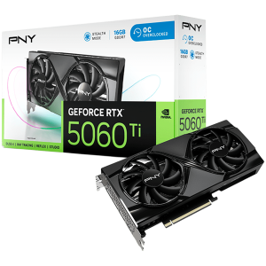 PNY Video Card GeForce RT 5060 Ti 16GB GDDR7 Memory Overclocked Dual Fan GPU 3x Display Port 1x HDMI 4608 CUDA Cores 180 W Max Power Consumption