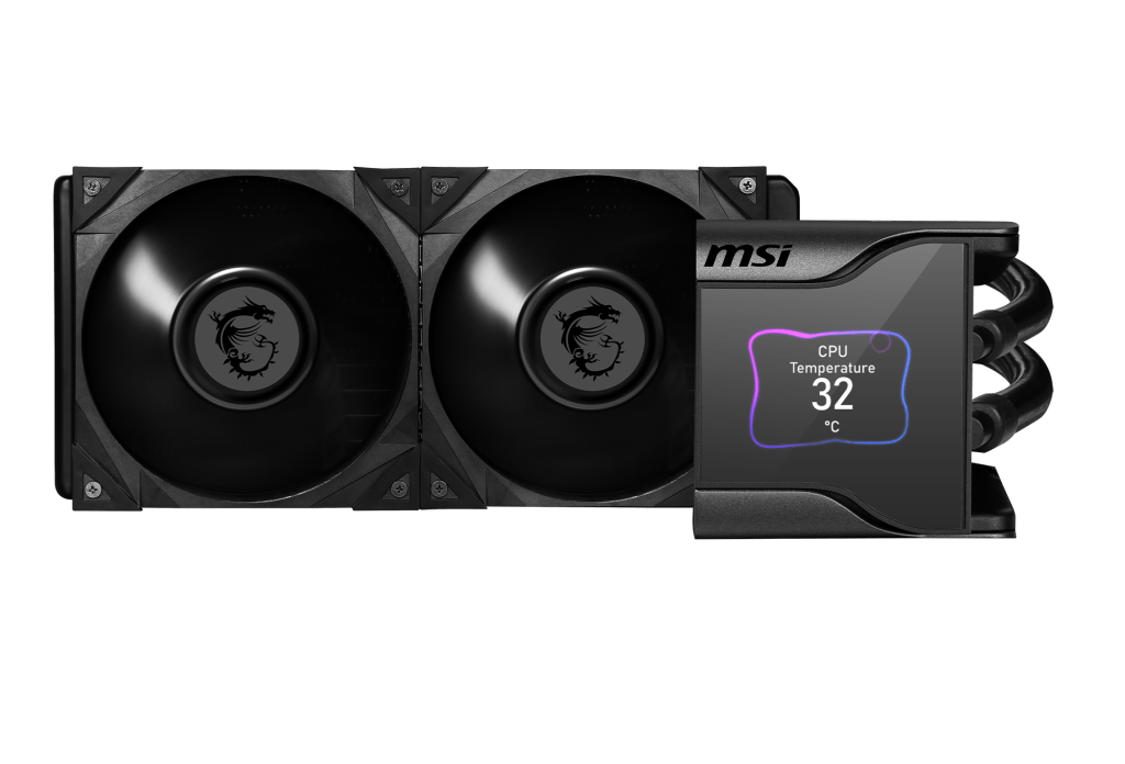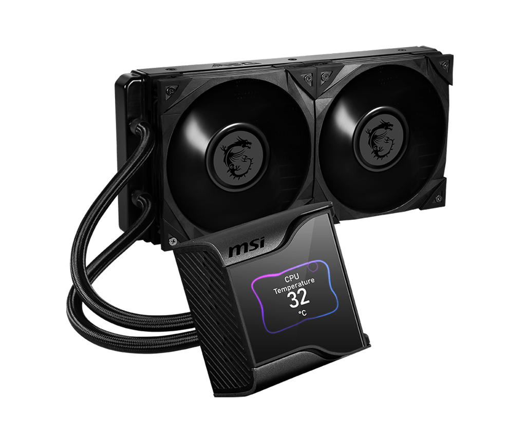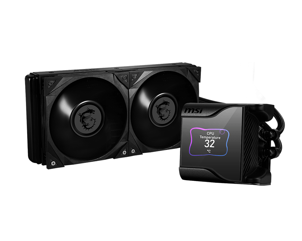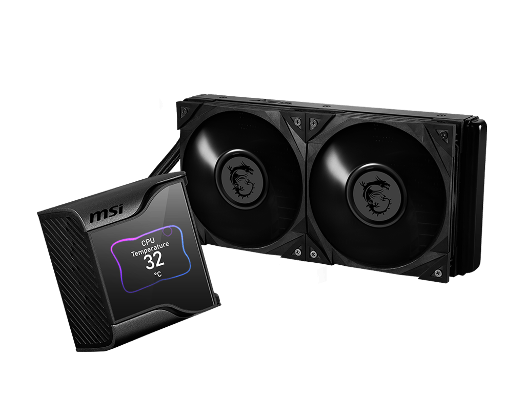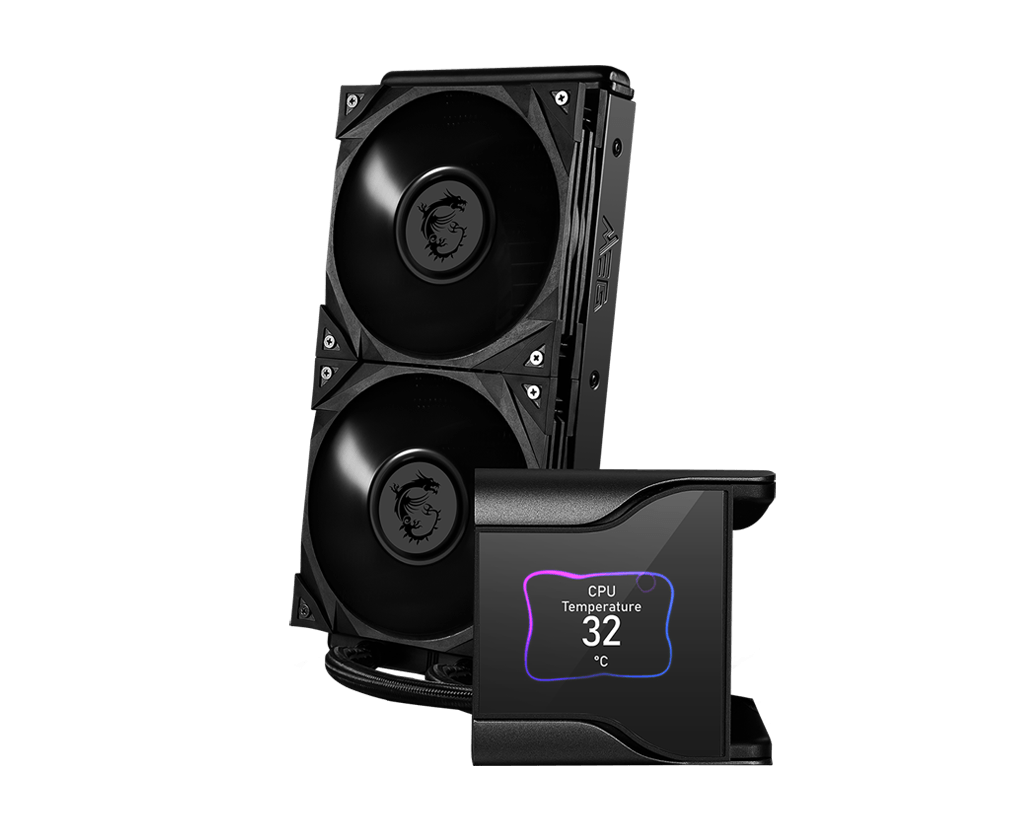 Жидкостная система охлаждения MSI MEG CORELIQUID S280 способна гарантировать безопасное и эффективное функционирование высокопроизводительного процессора, в том числе – используемого в составе мощного игрового компьютера. Устройство совместимо с подавляющим большинством распространенных в настоящее время сокетов и подходит для процессоров Intel и AMD. Главная особенность модели – наличие жидкокристаллического дисплея, на который выводится информация о температуре процессора. Система охлаждения MSI оснащена крупным, но относительно легким радиатором, изготовленным из алюминия. Материал водоблока – медь. В наличии 2x 140-миллиметровых вентилятора, базирующихся на долговечных гидродинамических подшипниках. Вентиляторы могут останавливаться. Максимальная частота вращения довольно велика – 1800 оборотов в минуту. Скорость вращения вентиляторов изменяется в автоматическом режиме.