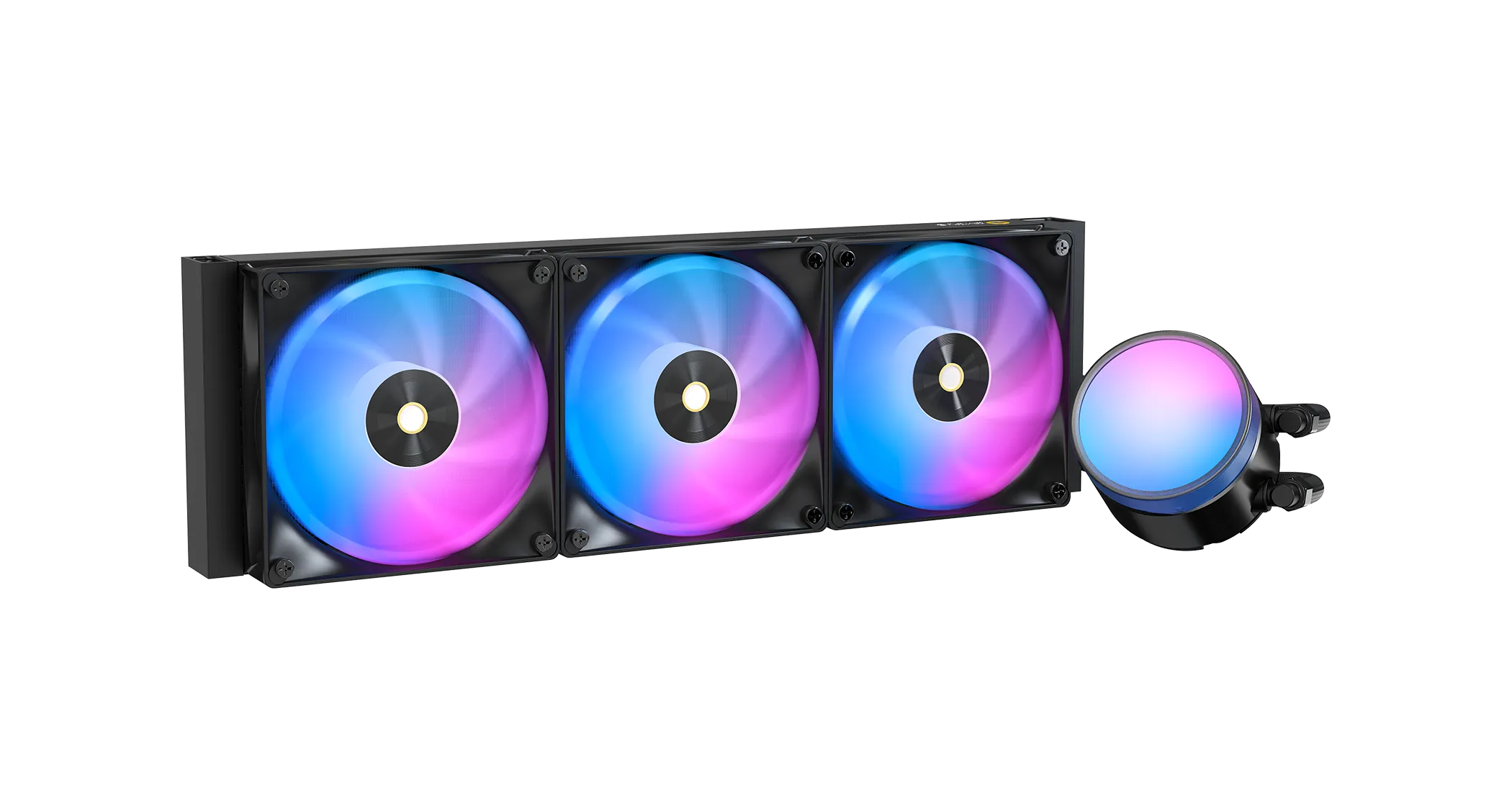 Эстетика многослойного светового эффекта для создания различных пространственных и визуальных измерений. Поддержка функции ARGB для настройки светового эффекта. Эффективный малошумный охлаждающий насос обеспечивает работу со скоростью до 2900 об/мин. Оснащен 3 высокопроизводительными вентиляторами ARGB. Новая конструкция с быстрым креплением для облегчения сборки.